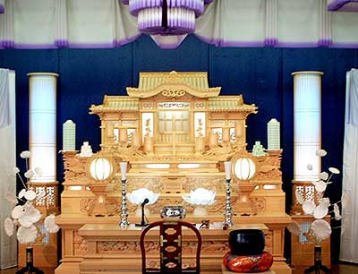 面影コース 55万円 ・総布張棺 ・骨壺(鉄仙・金襴箱付) ・遺影写真(白黒)キャビネ付 ・白水引幕・家紋付提灯 ・ドライアイス1回分
